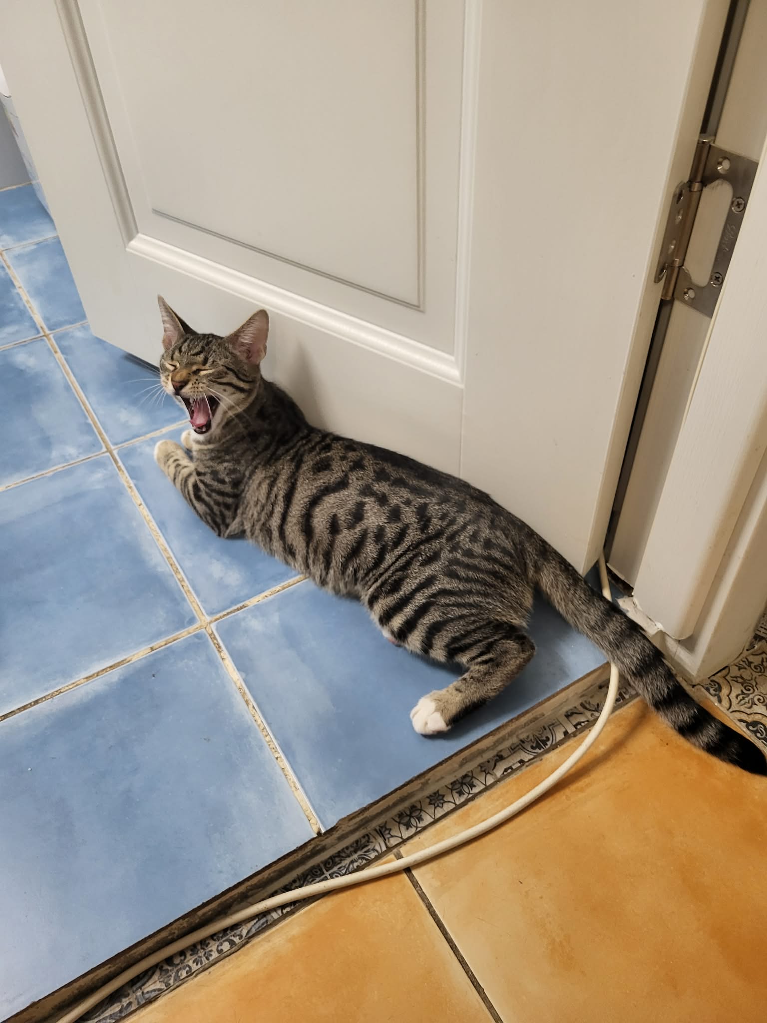 Late one quiet night, the silence was broken by desperate cries – tiny, terrified meows echoing into the dark. Our colleague rushed out to investigate and followed the sound… until he found a little tabby kitten, screaming at the top of his tiny lungs, eyes wide and pleading for help.